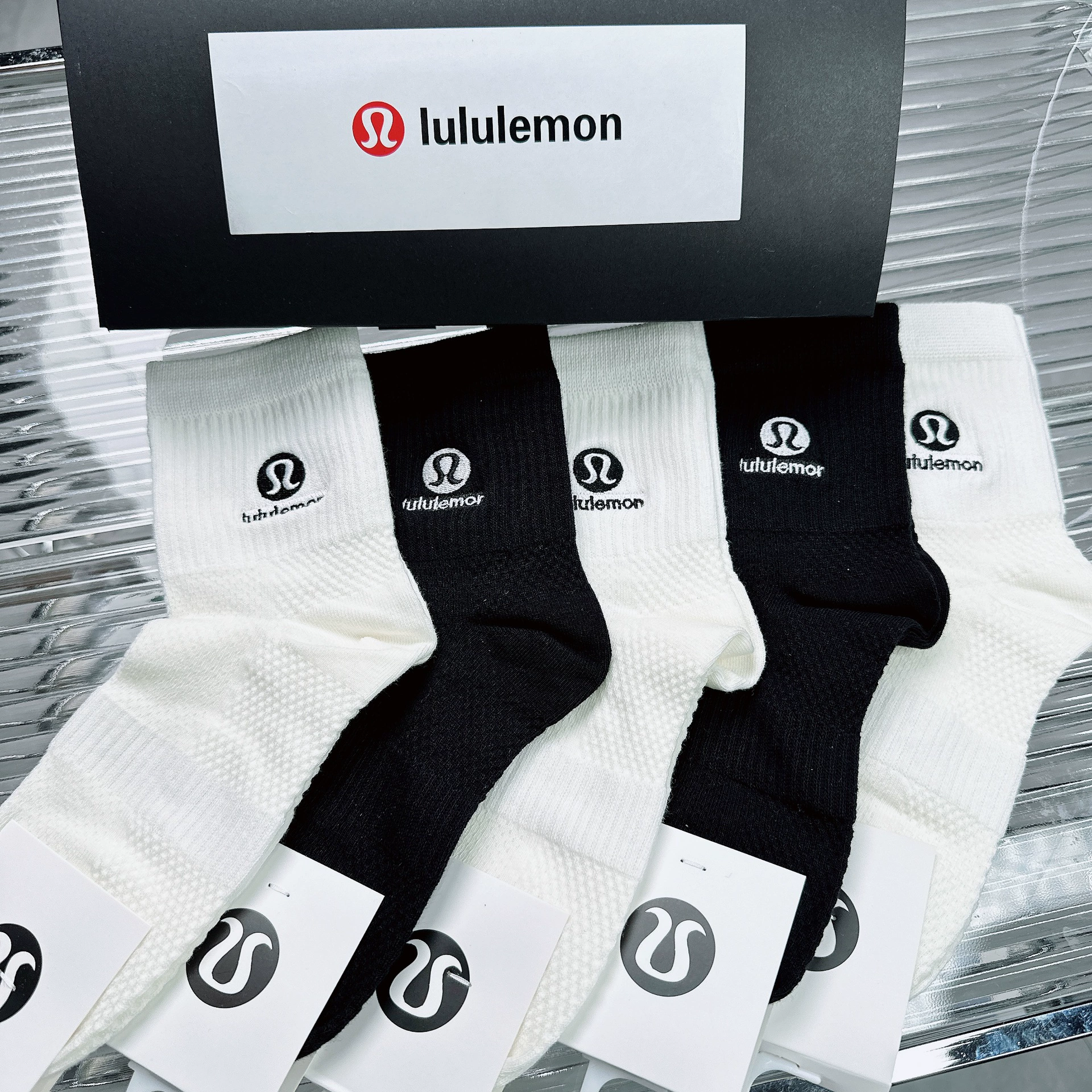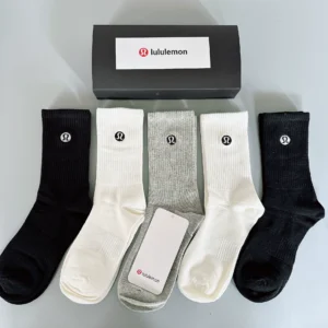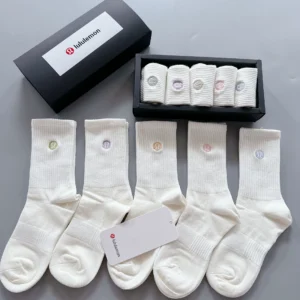 Be the first to review “Lululemon 5-piece pair of mid-calf embroidered sports socks for men and women”