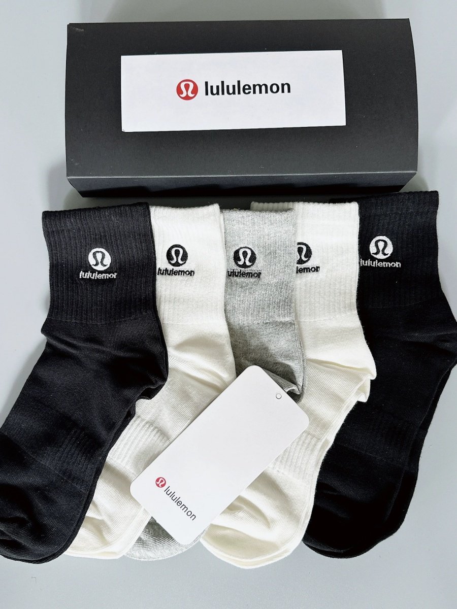 Lululemon 5-piece pair of mid-calf embroidered sports socks for men and women