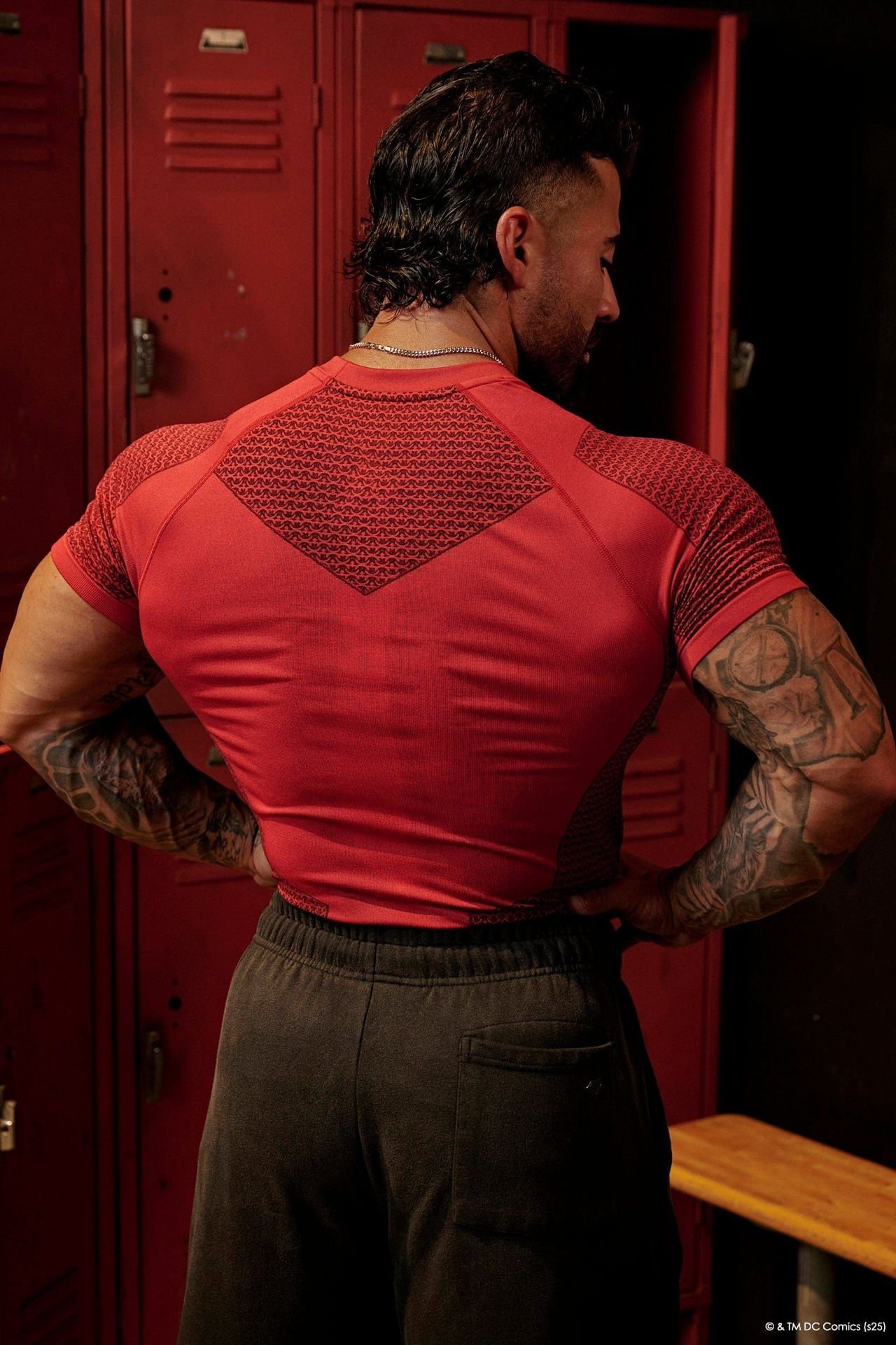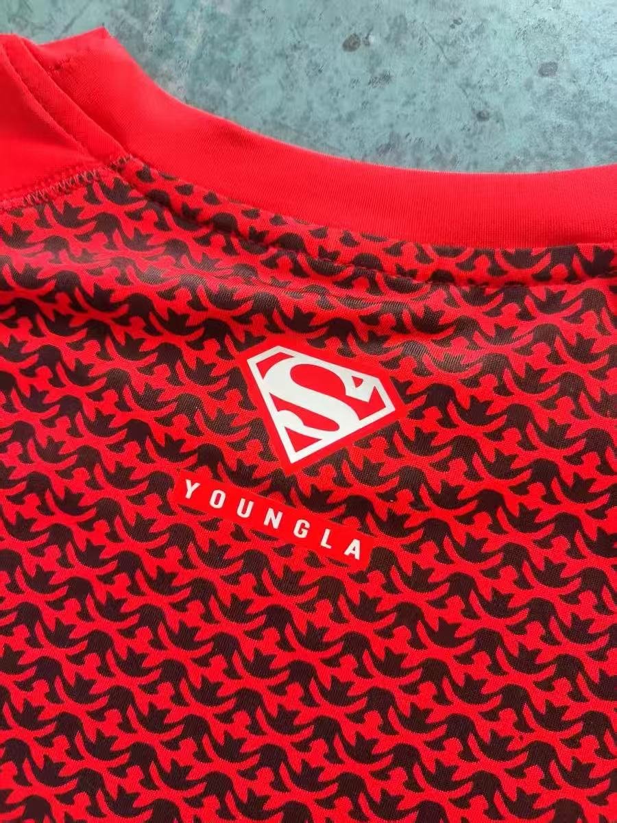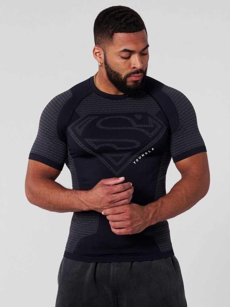 YOUNGLA collaboration with Superman – breathable, form-fitting sports top for fitness training