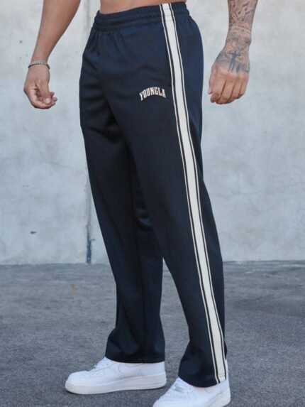 YOUNGLA's new men's sportswear pants are patchwork with printed casual trousers