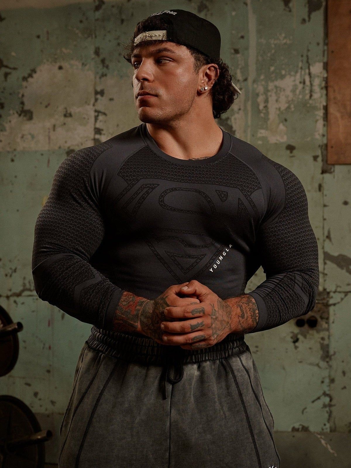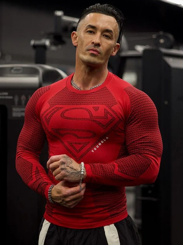 YOUNGLA x Superman men’s long-sleeved sports fitness tight-fitting clothing